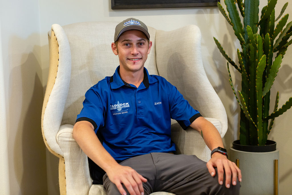 Zach is the newest member of Tadlock Water, he has been with our company since December of 2018. Zach is one of our family members, so we were very happy he came aboard with us. He will also be one of the faces you see for filter changes, salt delivery, sales and installations.